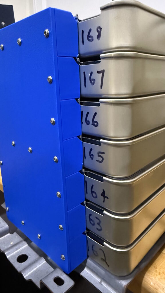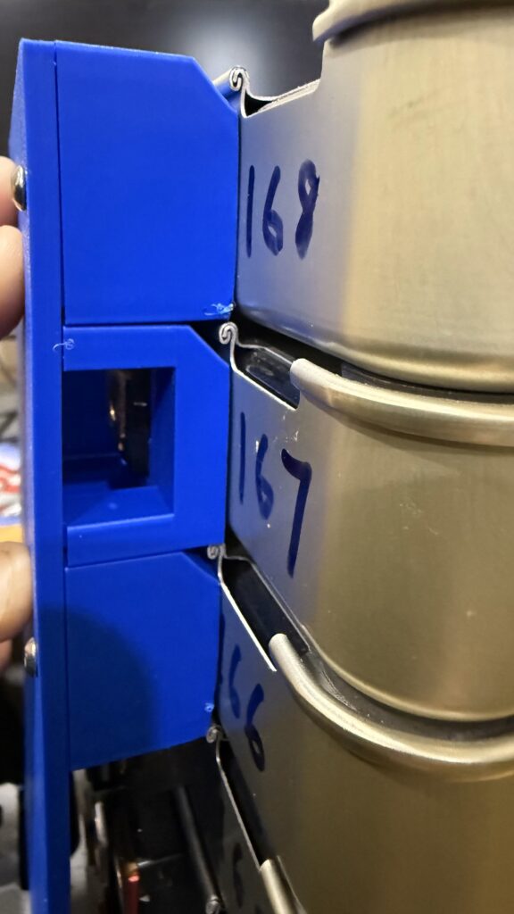 I have test fit this onto three separate stacks of 7 modules – and I found that I had to adjust the tension of the threaded rods – I measured the length of the stack and made sure it was exactly 238mm high (7x 34mm).. It can be a mm or two taller for some wriggle room.