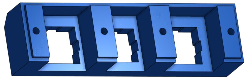 I then designed a cover that spans 7 modules high and has holes that line up with the threaded inserts to make a really strong safe cover.